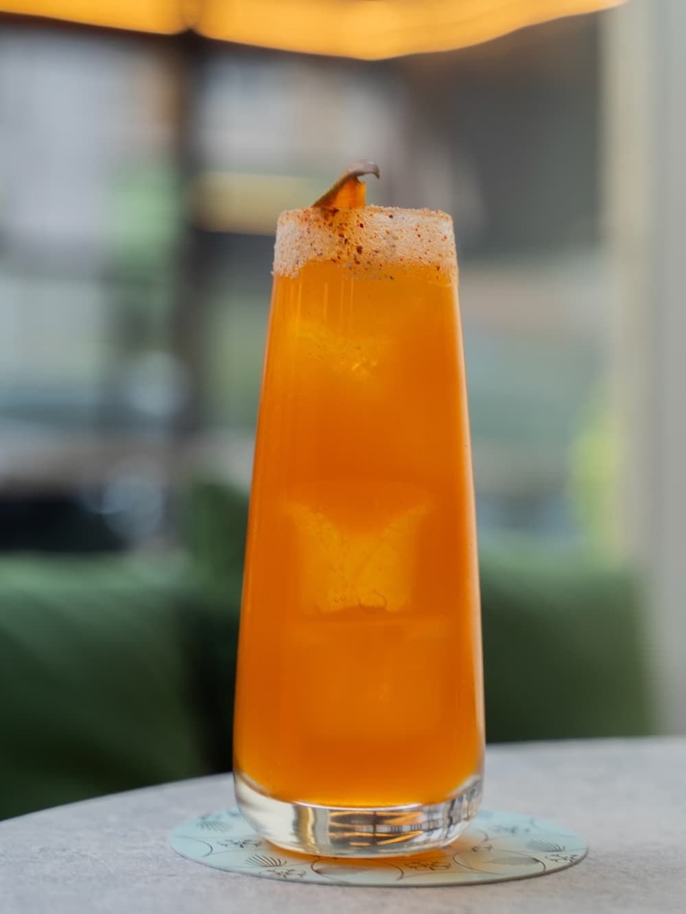 Temptation Island€ 15Tequila, mango, passion fruit, ancho reyes red, agave, tabasco, rim di sale al chili ancho